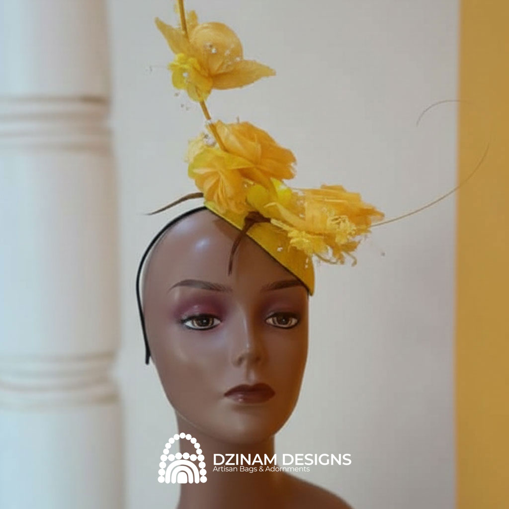 A vibrant and eye-catching fascinator designed in a striking all-yellow palette.